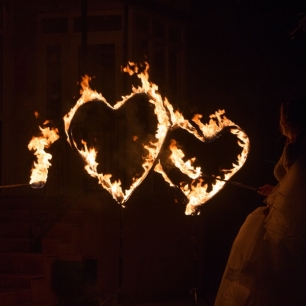 Особой популярностью также пользуется песочное шоу. Рисунки песком превратят вашу свадьбу в удивительную сказку: художник в присутствии всех гостей будет создавать уникальные и завораживающие картины на песке, которые будут сопровождаться приятной музыкой, появляться и исчезать, демонстрируясь при этом на большом экране. Кроме того, вы можете выбрать определённую тематику или заказать для всех присутствующих мастер-класс, чтобы они нарисовали для вас песочно-свадебное поздравление.