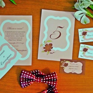 В первую очередь необходимо определиться с дизайном свадебных приглашений, ведь именно с них и начинается свадьба, и они – первое, что увидят ваши гости. Определитесь с форматом, какой цвет или сочетание оттенков вам нравятся, какими должны быть материалы и фактура. Рассылать пригласительные карточки лучше всего не позже чем за месяц-два до торжества. Также будет очень красиво, если в едином стиле и одной цветовой гамме с пригласительными будет выдержана и другая полиграфия, например, банкетные карточки и план рассадки на свадьбу.
